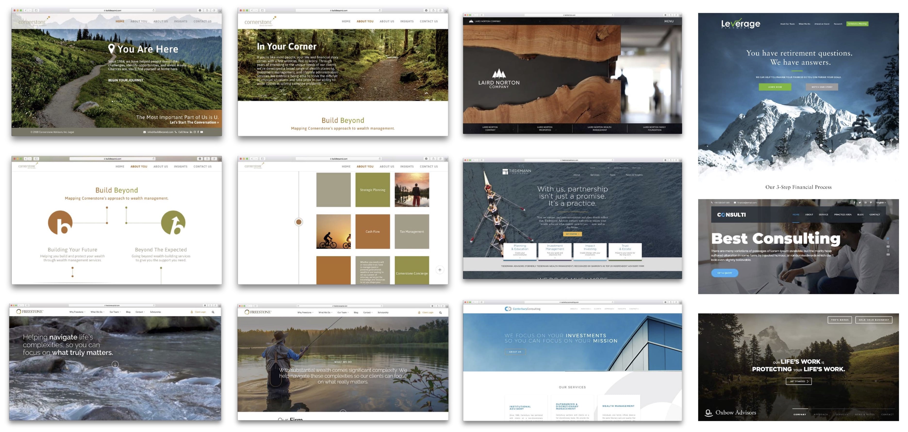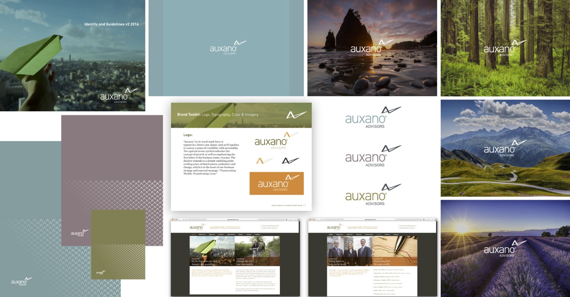 Auxano Advisors came to a small studio with a need to improve their communication to present and future clients. My role on this project was primarily web development. As a multi-generational wealth management firm, Auxano understands the importance of communitcating across generational lines. In order to allow their website and brand to stand out from the pack, we evaluated the industry and realized their existing brand's color palette and imagery was holding it back from communicating to younger generations.