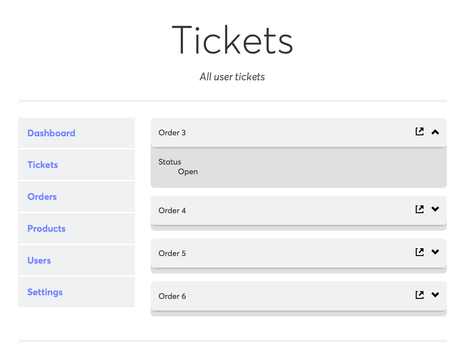 Furthermore, admins and writers have similar dashboards with navigation tuned to their needs. Admins, for example, see all orders on the site while writers can see tickets assigned to them.